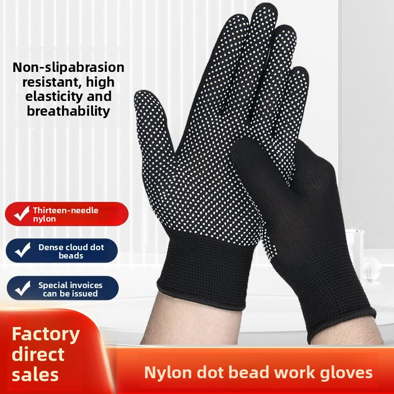 These labor protection gloves are crafted from durable nylon with a 13-pin construction for enhanced strength and flexibility. The non-slip dotted surface ensures a secure grip, making them ideal for driving, handling, and express delivery tasks. Their thin design allows for precise touch screen use without removing the gloves, combining safety with convenience for professional work environments.