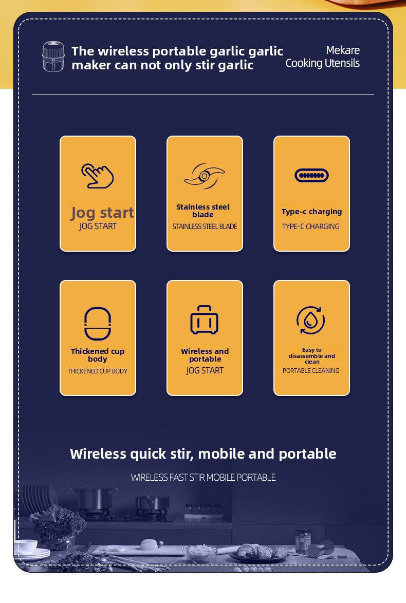 This Mini Electric Masher is a versatile kitchen tool designed for efficient processing of garlic, herbs, fruits, vegetables, and even meat. Its wireless, portable design ensures convenience and ease of use anywhere in your home. Ideal for preparing baby food or finely chopping ingredients, it combines multiple functions into one compact device, saving time and effort while maintaining consistent results. Perfect for those seeking a reliable, expert-grade appliance to streamline meal preparation.