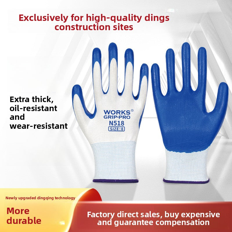 These N518 labor protection gloves feature a wear-resistant nitrile coating that ensures durability and reliable grip on construction sites. Designed with a non-slip surface, they enhance safety and precision during demanding tasks. The gloves also support touchscreen use, allowing seamless device operation without removal. Ideal for wholesale purchase, they provide robust hand protection tailored for professional environments. Contact us for pricing details.